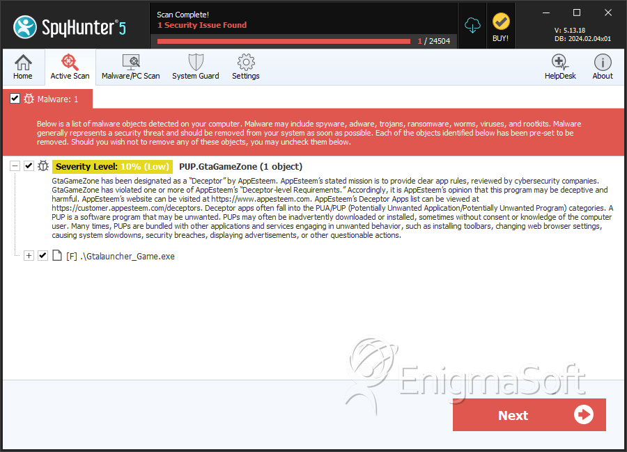 SpyHunter Detects & Remove PUP.GtaGameZone