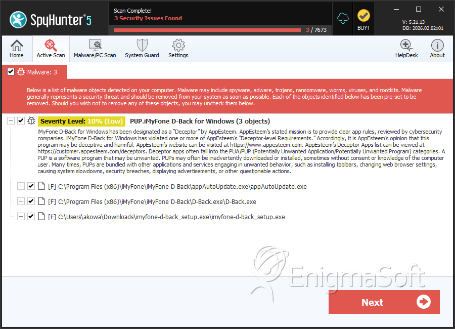 SpyHunter Detects & Remove PUP.iMyFone D-Back for Windows