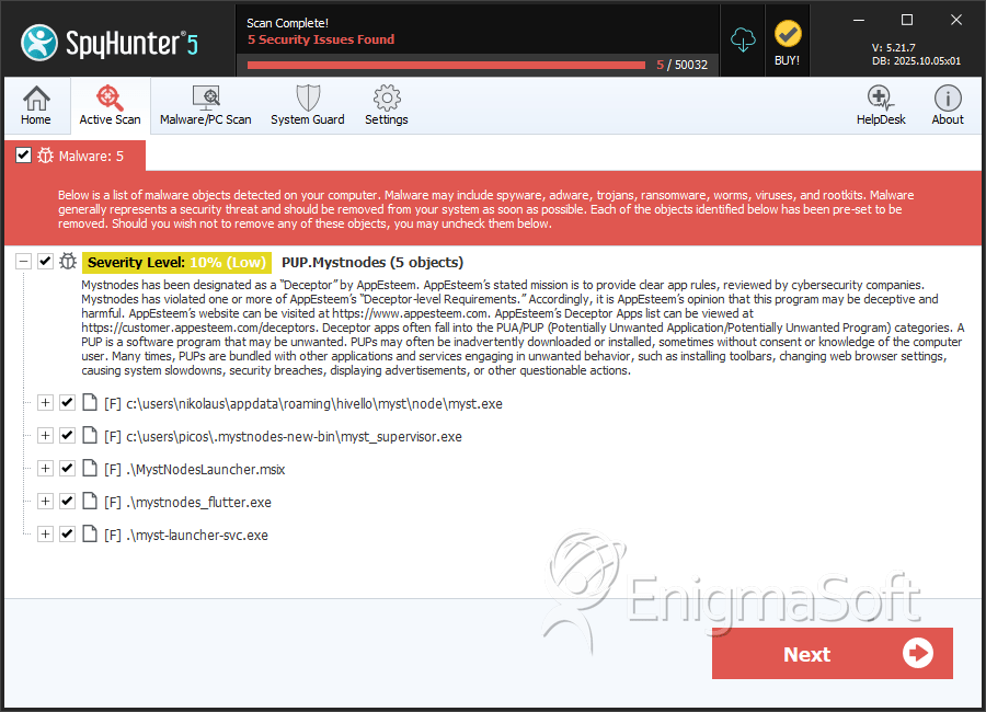 SpyHunter Detects & Remove PUP.Mystnodes