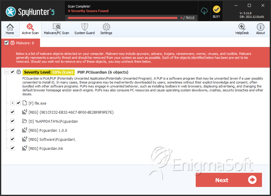 EnigmaSoft Threat Scorecards display a variety of useful information, including: