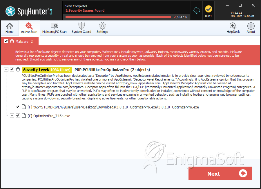 Threat Database Potentially Unwanted Programs PUP.PCUtilitiesProOptimizerPro