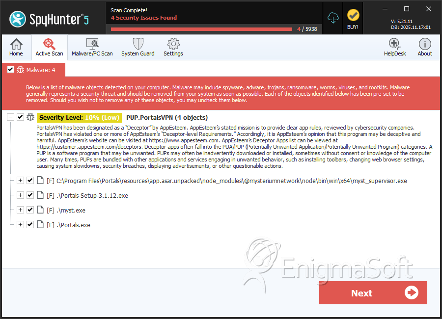 SpyHunter Detects & Remove PUP.PortalsVPN
