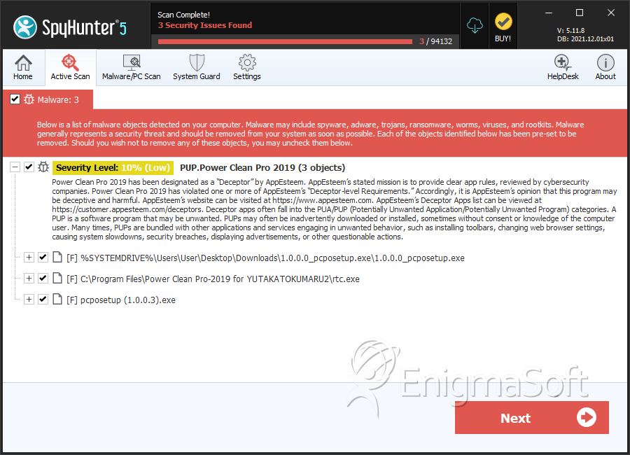 SpyHunter Detects & Remove PUP.Power Clean Pro 2019