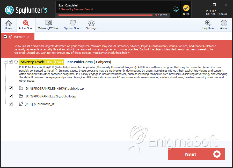Ranking: The ranking of a particular threat in EnigmaSoft’s Threat Database.