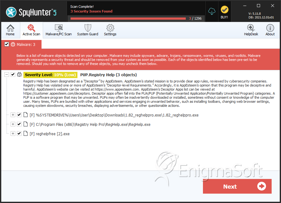 SpyHunter Detects & Remove PUP.Registry Help