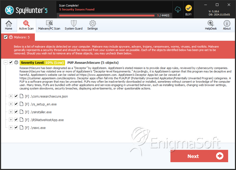 SpyHunter Detects & Remove PUP.ResearchSecure