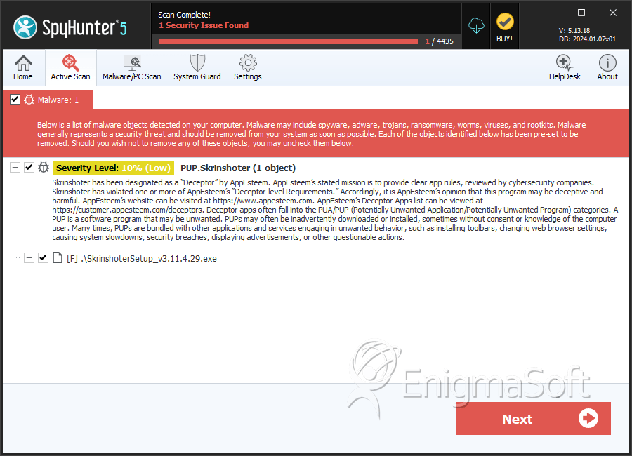 SpyHunter Detects & Remove PUP.Skrinshoter