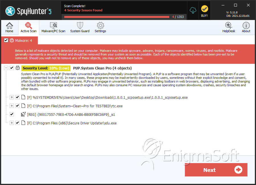 SpyHunter Detects & Remove PUP.System Clean Pro