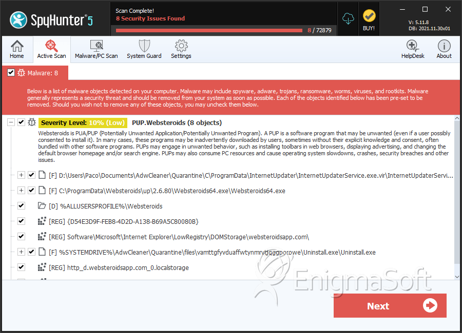 EnigmaSoft Threat Scorecards display a variety of useful information, including: