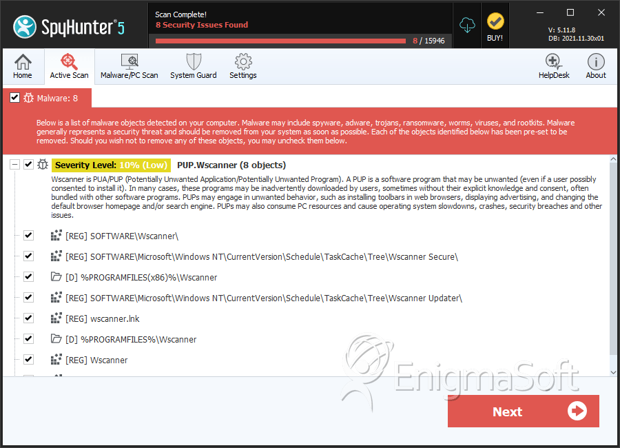 SpyHunter Detects & Remove PUP.Wscanner