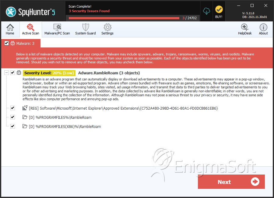 Ranking: The ranking of a particular threat in EnigmaSoft’s Threat Database.