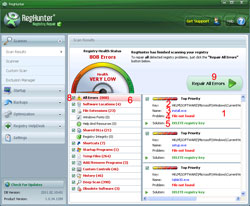 To have RegHunter repair the selected errors, simply click the "Repair All Errors" (9) button.