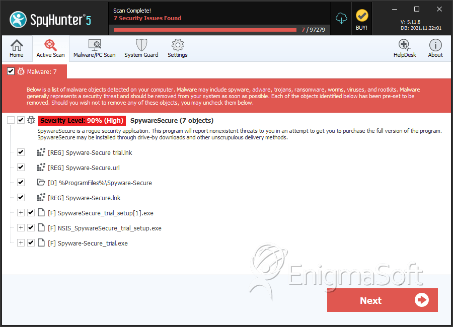 SpyHunter обнаруживает и удаляет SpywareSecure