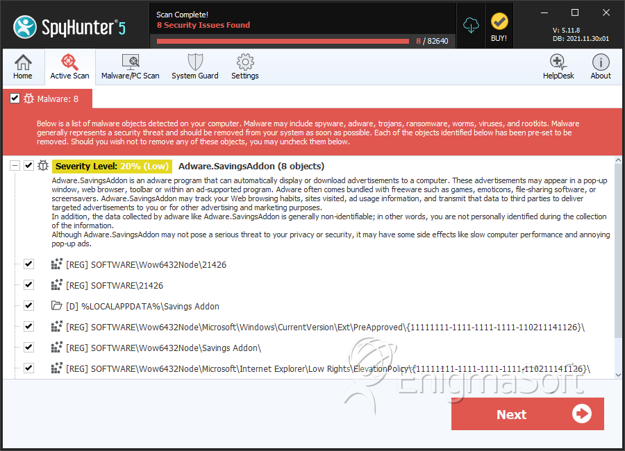 SpyHunter Detects & Remove Savings Addon