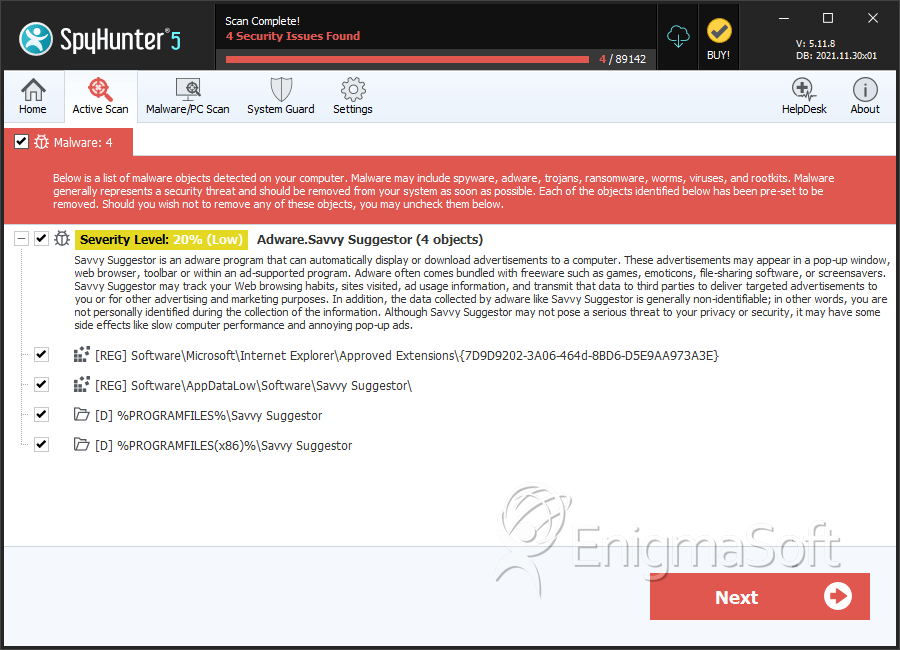 EnigmaSoft Threat Scorecards display a variety of useful information, including: