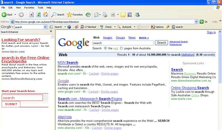 Browser hijackers, in the form of web browser toolbars promising to enhance online searches, are among the most common forms of malware. These are often also linked to fake search engine websites that display advertisements instead of legitimate search results. Browser hijackers receive their name because the main element of these kinds of infections involves taking over the victim's web browser and forcing it to visit certain websites without the computer user's authorization. These websites will often be fake search engines and the redirect will occur when the victim visits a legitimate search engine website. Inexperienced computer users may be ambushed into having no doubt that this is actually normal and are more probable to fall prey to this scam.