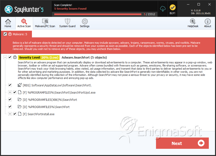 SearchFort is an adware program that may cause unwanted redirects or load up pages that attempt to offer ways to search the internet. SearchFort may redirect your web browser to unwanted sites where you could be presented with several advertisements or sponsored links. SearchFort may initially load up a generic search engine site where the results have several ads related to the SearchFort application or its plugins and extensions. Loading of SearchFort may come from various freeware programs or bundled software apps. Once loaded, SearchFort may then cause use of your web browser to be a slow process in some situations. Removal of SearchFort will eliminate all actions it performs when installed. Automatically eliminating SearchFort may take the use of an antispyware application.