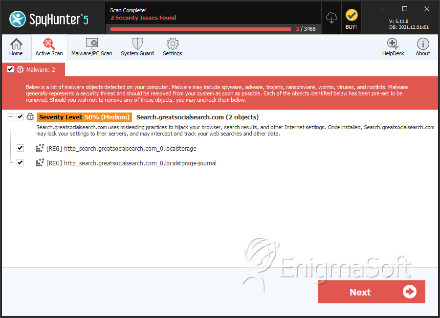 Ranking: The ranking of a particular threat in EnigmaSoft’s Threat Database.