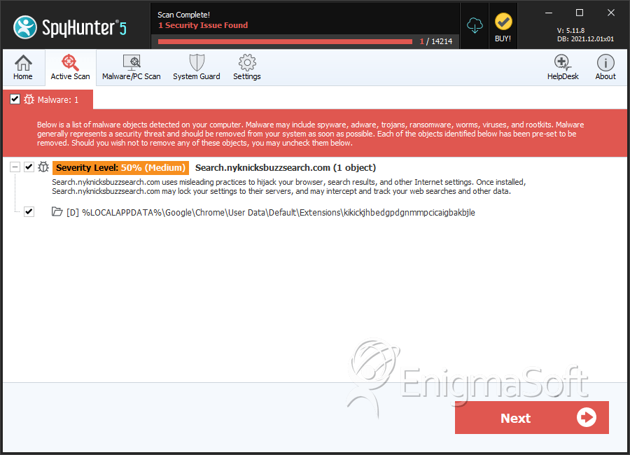 Ranking: The ranking of a particular threat in EnigmaSoft’s Threat Database.