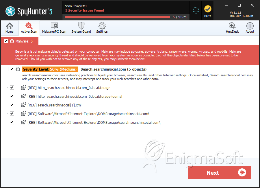 SpyHunter Detects & Remove Search.searchinsocial.com