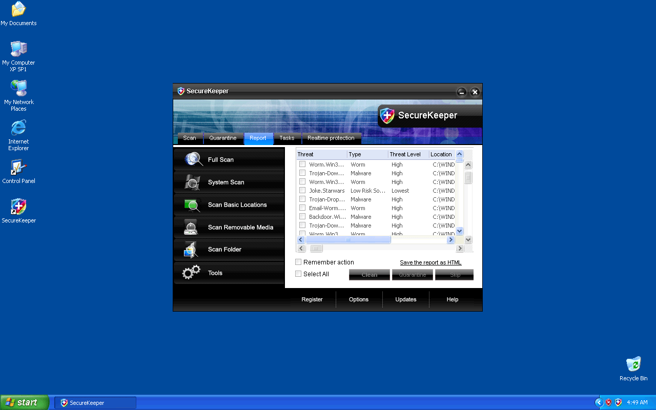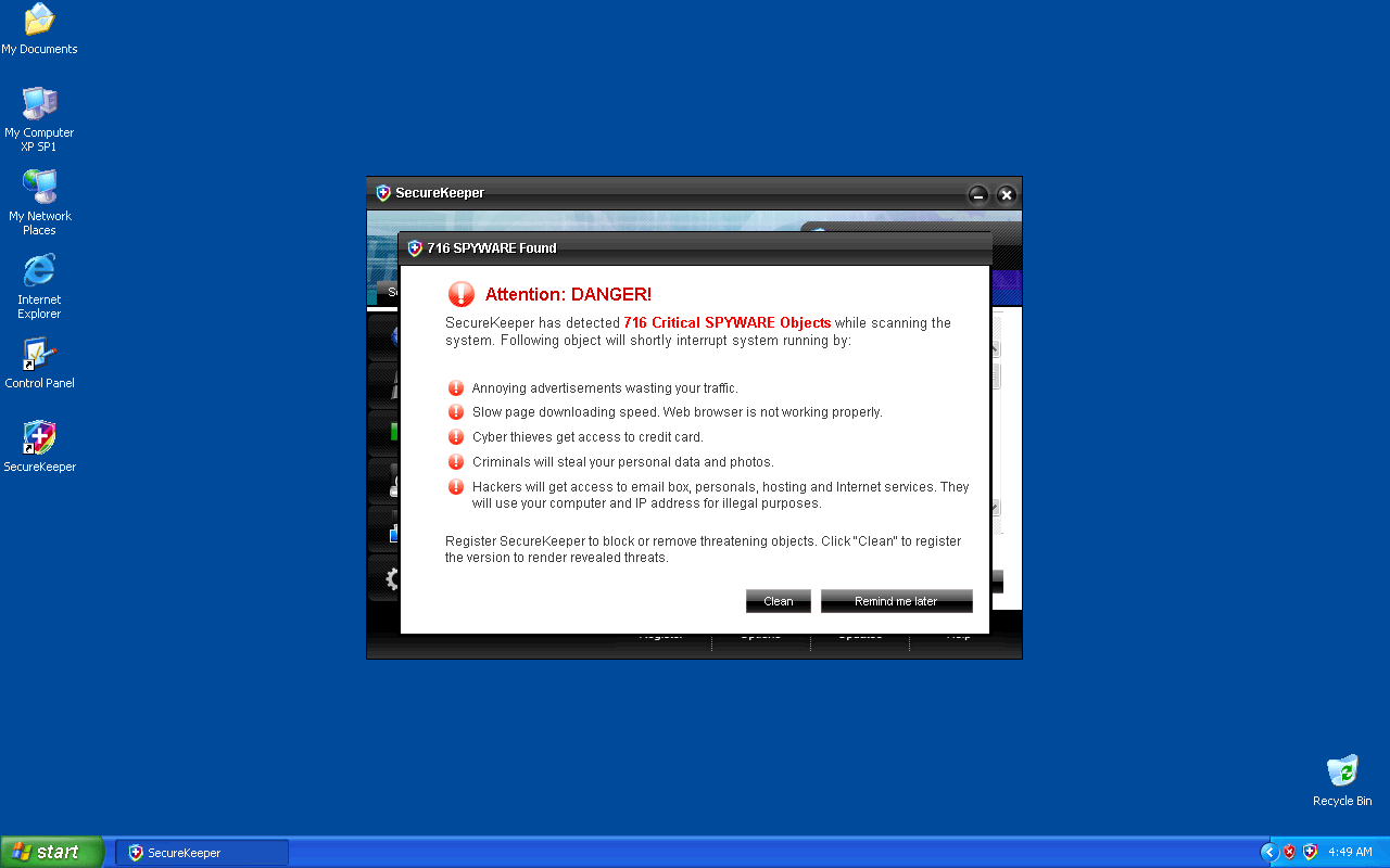 SecureKeeper is an untrustworthy anti-spyware program that displays fake system scan reports in order to scare users into purchasing it. The parasites detected on the scan report do not exist and all the warning messages or pop-ups displayed are false. SecureKeeper spreads with the help of Trojans or it can be downloaded from malicious websites. Uninstall SecureKeeper from your computer as soon as possible.
