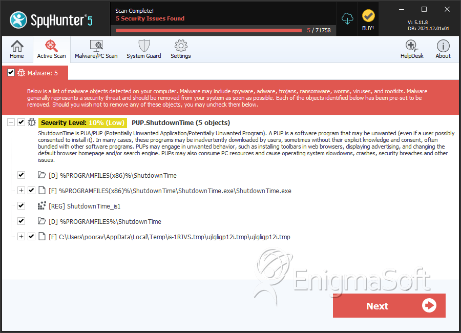 SpyHunter Detects & Remove ShutdownTime