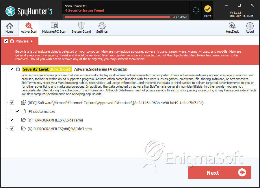 EnigmaSoft Threat Scorecards display a variety of useful information, including:
