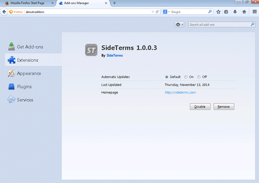SideTerms is considered adware. Once SideTerms enters the PC, it makes modifications to the targeted computer's settings and starts interrupting the computer user's browsing sessions with a variety of pop-up advertisements shown as coupons, offers and other deals. Web-links that are added into these notifications advertise websites that are linked to SideTerms. Computer users may think SideTerms ads will enhance their Internet experience by providing deals and coupons, but, basically, the ads are meant to promote certain websites. SideTerms is advertised on its official website (sideterms.com) and may be bundled with freeware. SideTerms may trace the computer user's browsing habits and lead to unwanted redirections to commercial websites.