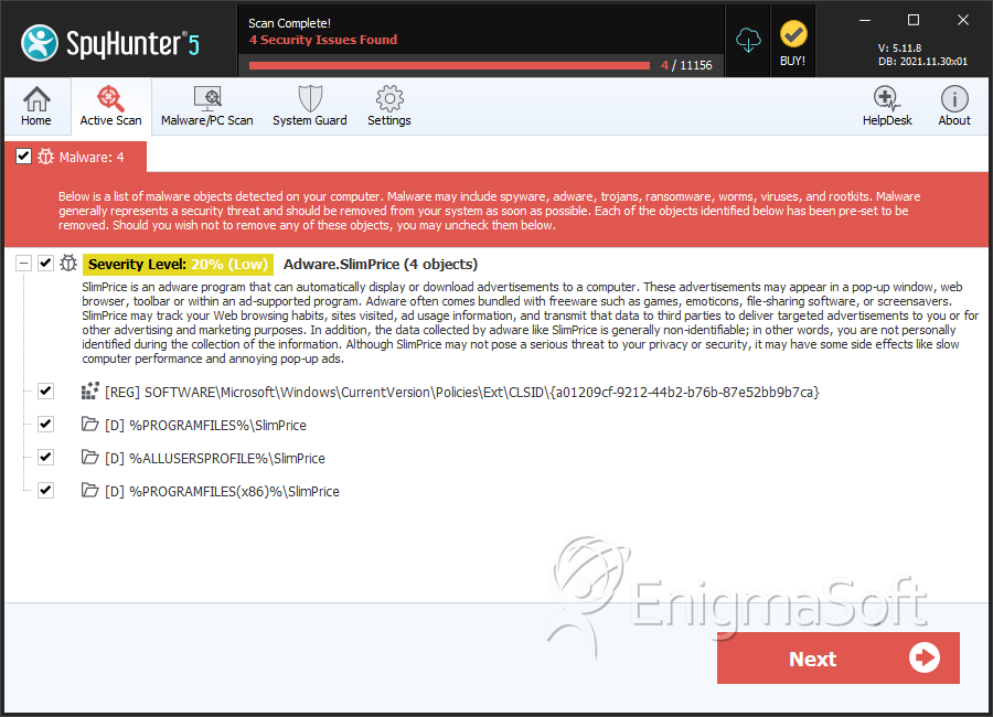 Ranking: The ranking of a particular threat in EnigmaSoft’s Threat Database.