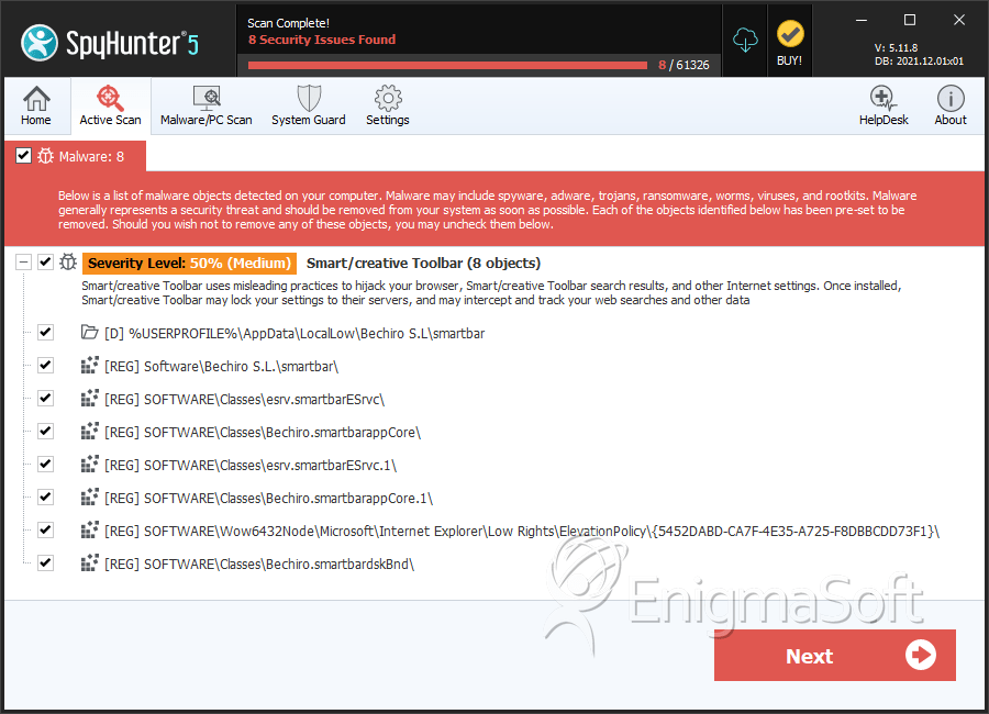 SpyHunter Detects & Remove Smart/creative Toolbar