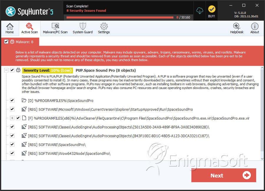 SpyHunter Detects & Remove Space Sound Pro