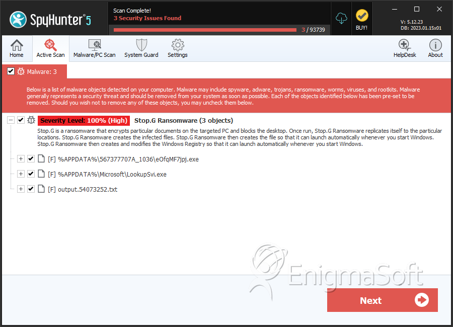 SpyHunter Detects & Remove Stop.G Ransomware