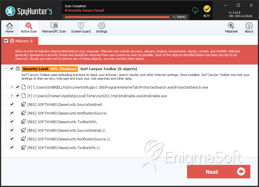 SpyHunter Detects & Remove Surf Canyon Toolbar