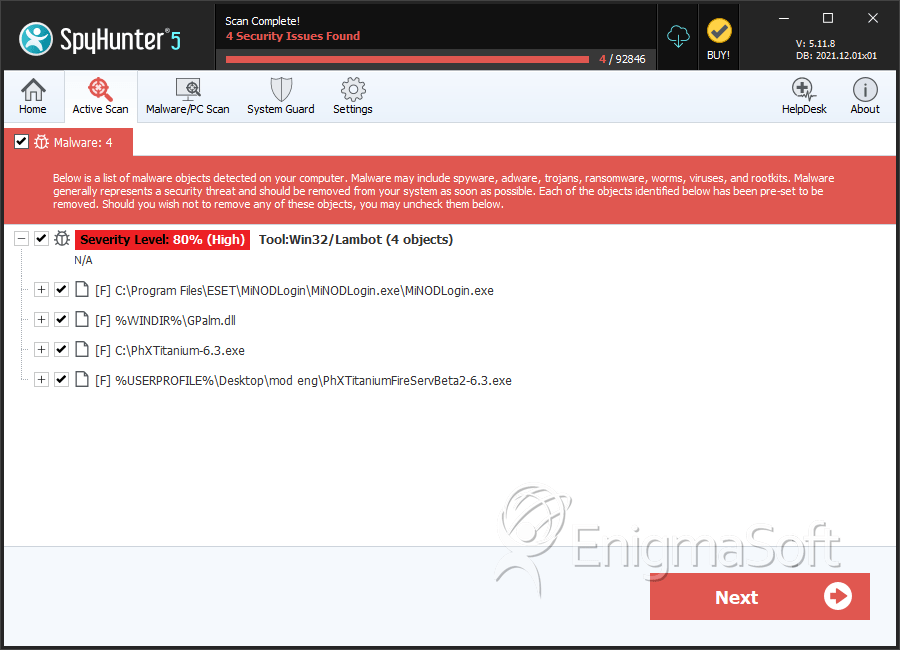 SpyHunter Detects & Remove Tool:Win32/Lambot