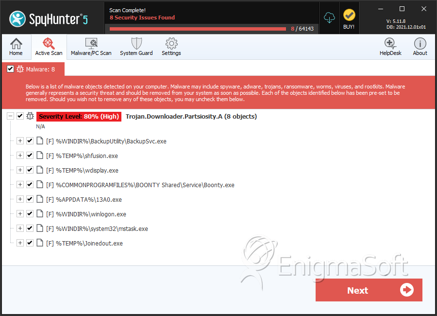 SpyHunter Detects & Remove Trojan.Downloader.Partsiosity.A