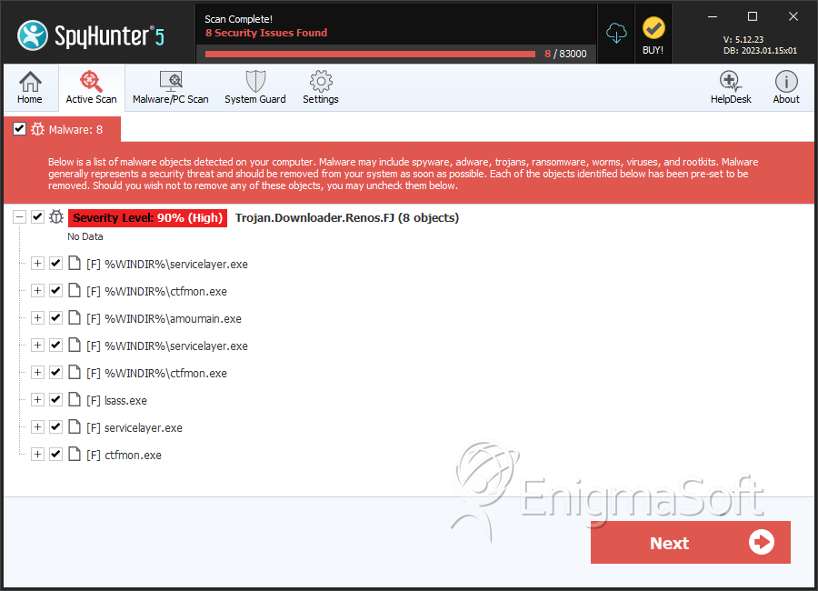 Ranking: The ranking of a particular threat in EnigmaSoft’s Threat Database.
