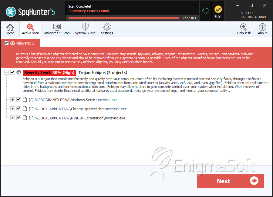 EnigmaSoft Threat Scorecards display a variety of useful information, including: