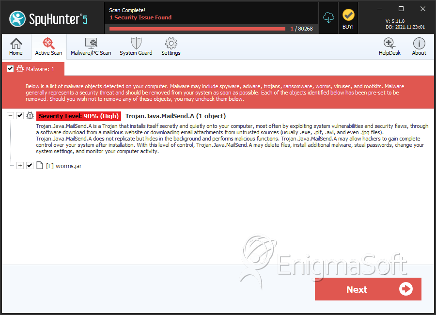 SpyHunter Detects & Remove Trojan.Java.MailSend.A