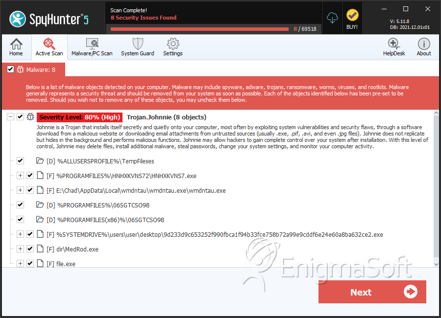 EnigmaSoft Threat Scorecards display a variety of useful information, including: