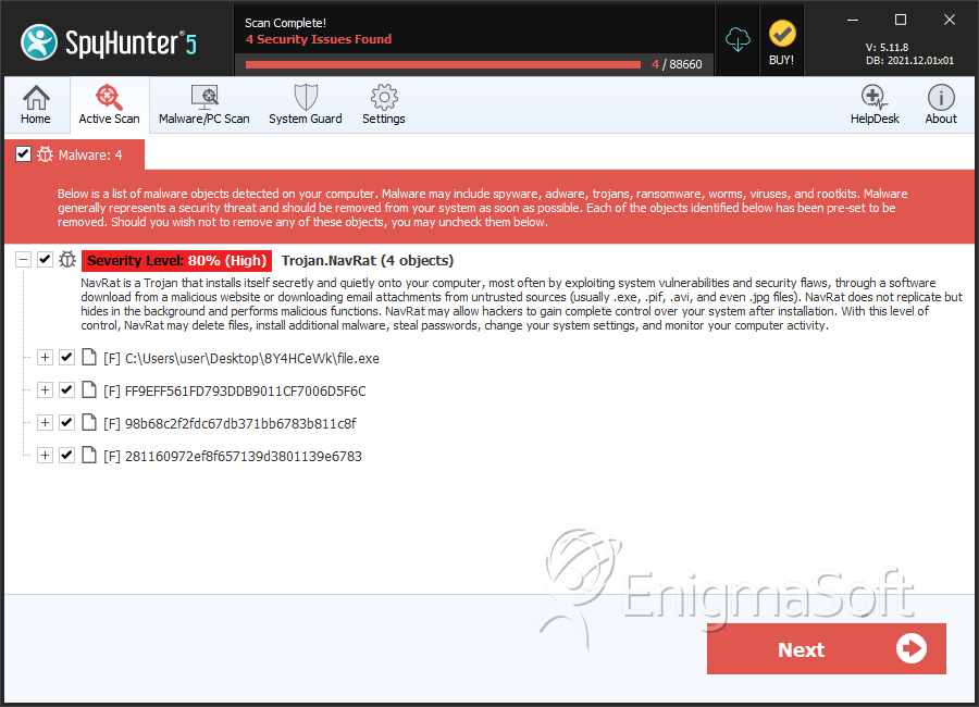 EnigmaSoft Threat Scorecards display a variety of useful information, including: