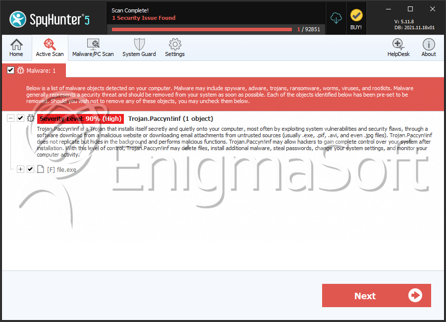 SpyHunter Detects & Remove Trojan.Paccyn!inf