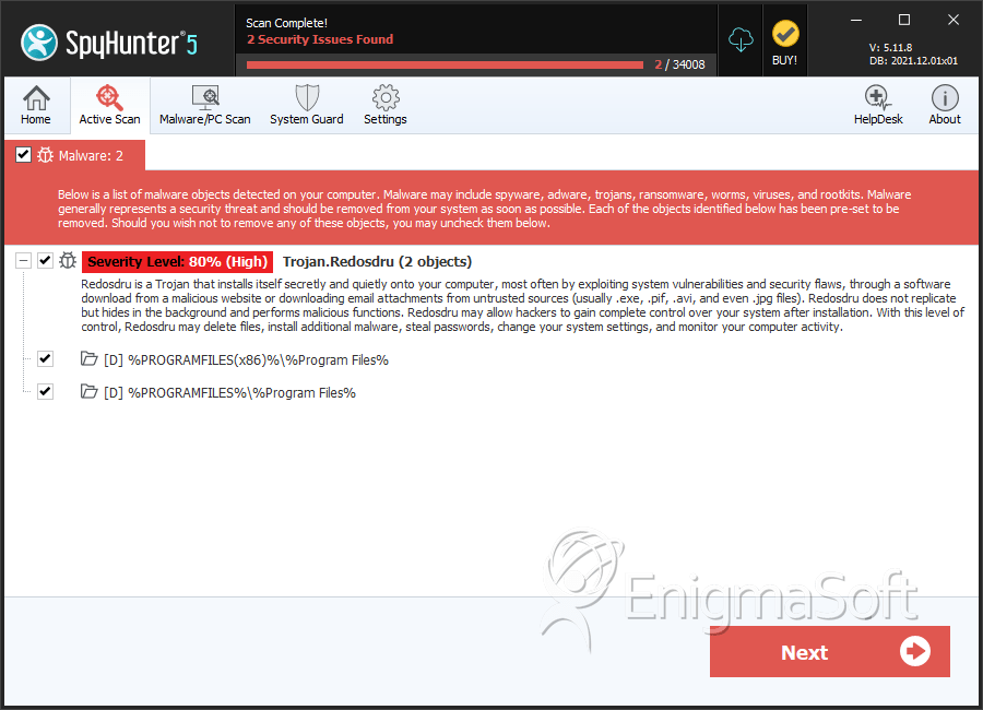 Ranking: The ranking of a particular threat in EnigmaSoft’s Threat Database.