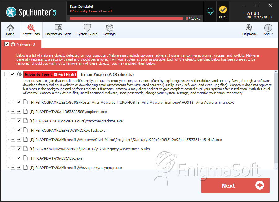 EnigmaSoft Threat Scorecards display a variety of useful information, including: