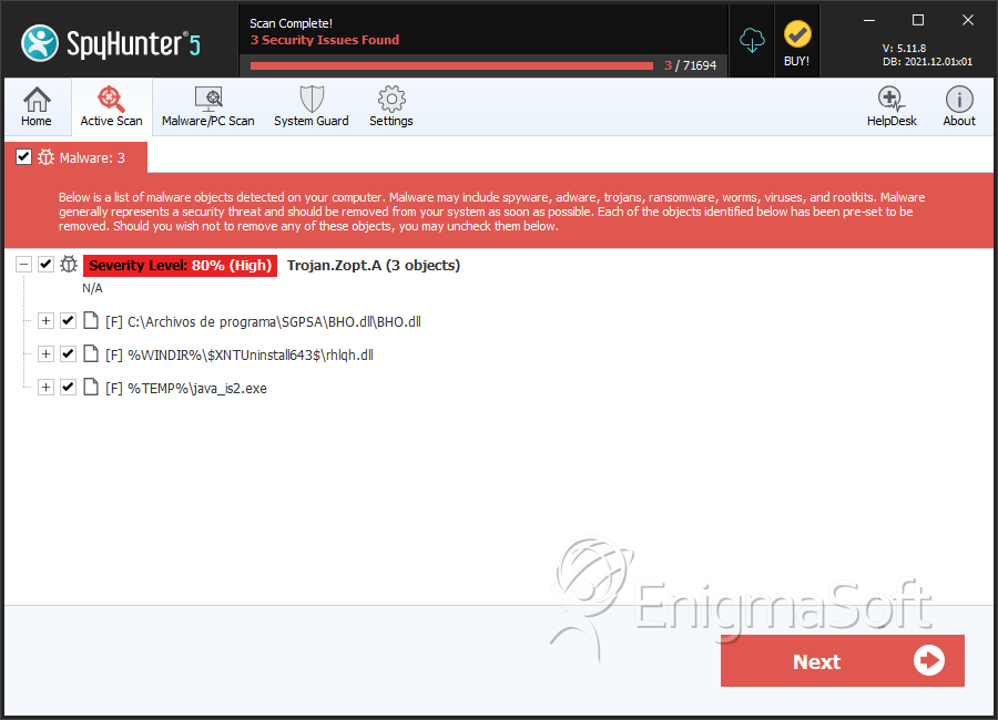 SpyHunter Detects & Remove Trojan.Zopt.A