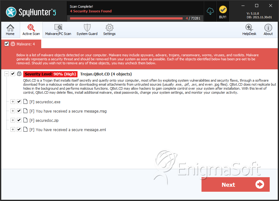 | 4. | You have received a secure message.eml | a735beb8bbb78dc3bc4031357f30a5d3 | 0 |