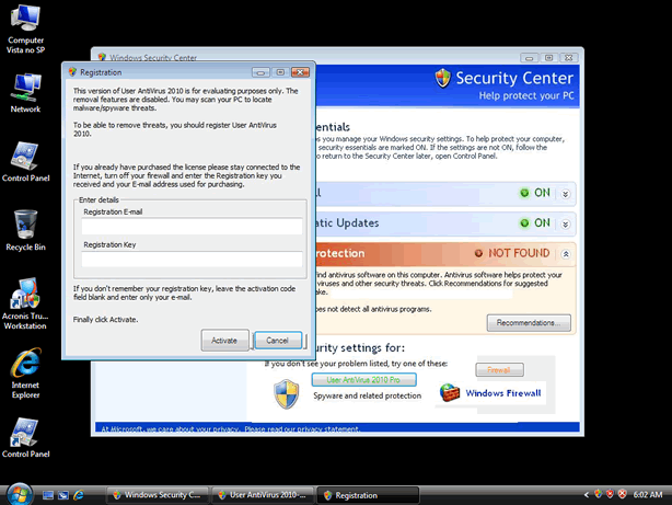 User Antivirus 2010 should never be used for the detection or removal of computer parasites. User Antivirus 2010 does not have the ability to remove any type of PC virus, spyware, Trojan or other malware infections.![]()