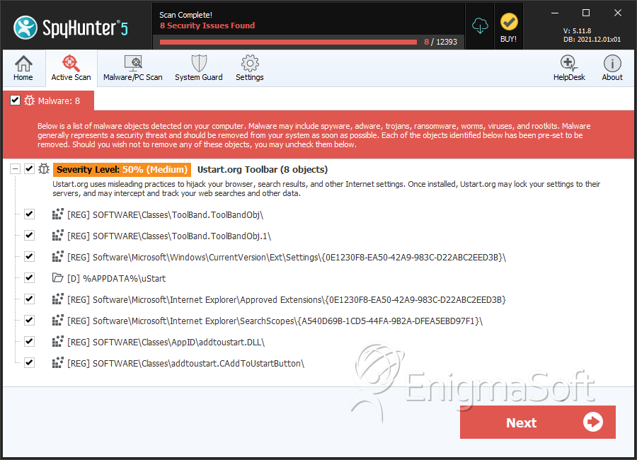 SpyHunter Detects & Remove Ustart.org Toolbar