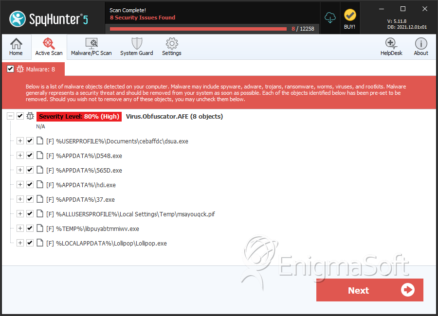 SpyHunter Detects & Remove Virus.Obfuscator.AFE