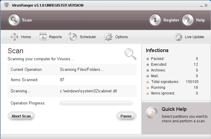 VirusRanger is a rogue anti-spyware program that hits a computer by way of various Trojans. Once active, VirusRanger bombards the infected system with numerous pop-up ads and system notifications warning the user of a supposed infection. This is, of course, untrue, but these scare tactics often work in persuading a user to download and install a trial version of VirusRanger that performs a false system scan, reporting an assortment of fake threats. These threats can supposedly only be removed with the full version of Virus Ranger, a fraudulent spyware remover that does absolutely nothing for your computer.