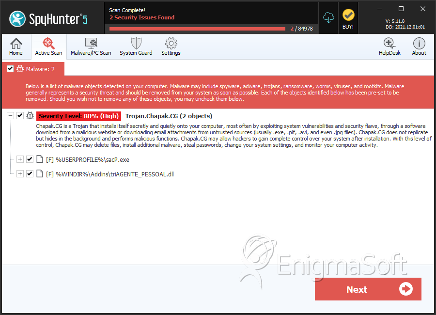 EnigmaSoft Threat Scorecards display a variety of useful information, including: